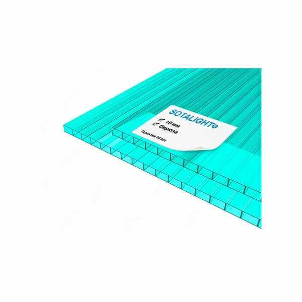 Сотовый поликарбонат 10 мм SOTALIGHT бирюза 2100х12000 мм