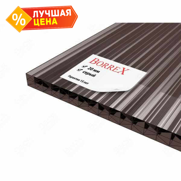 Сотовый поликарбонат 20 мм BORREX серый 2100х6000 мм