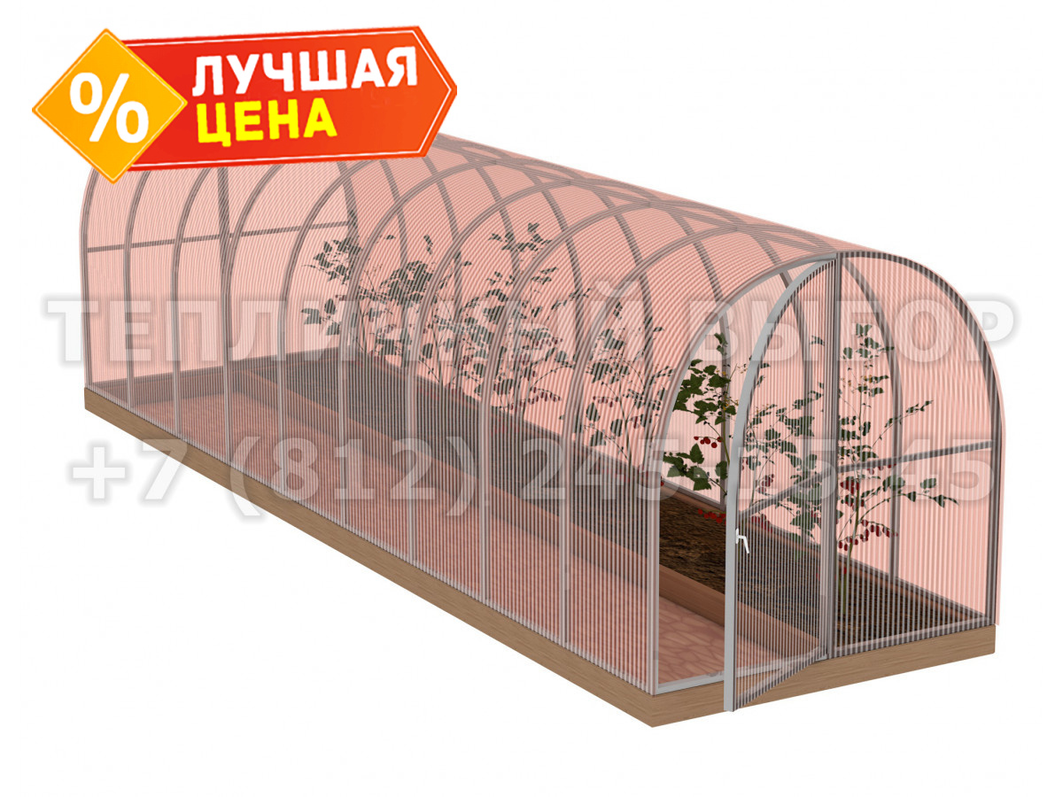 Теплица из поликарбоната-фито Усиленная Арочная 1,6х6 h=1.68 м профиль 20х20 мм