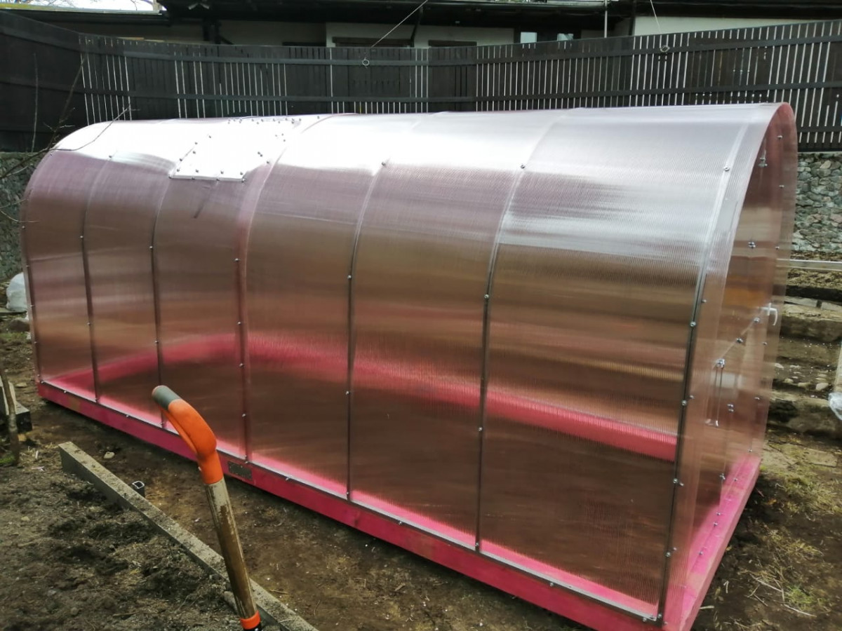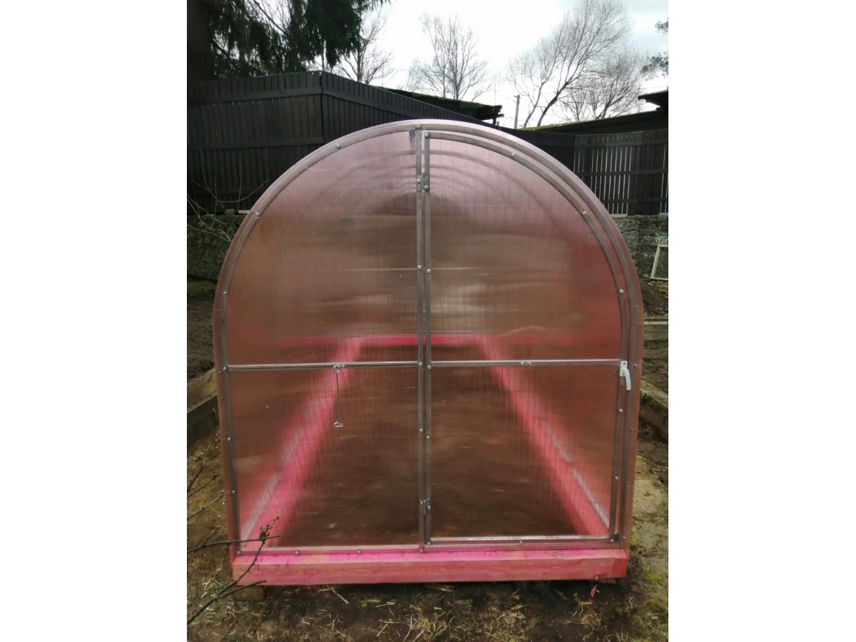 В разобранном виде теплица состоит из отдельных сварных рам в виде дуги. Транспортные габариты 2000х1700 мм.