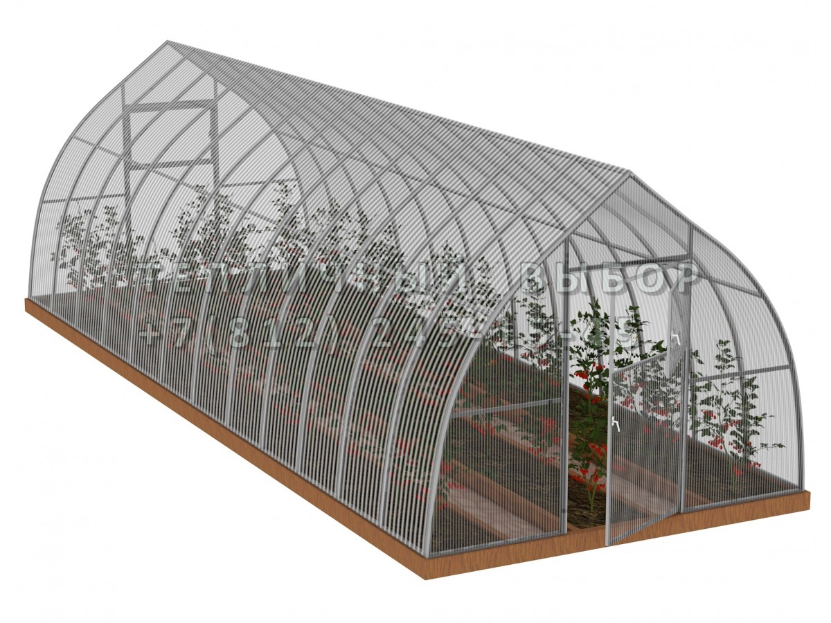 Теплица из поликарбоната Усиленная Капелька 2,5х12 h=2.3 м профиль 25х25 мм