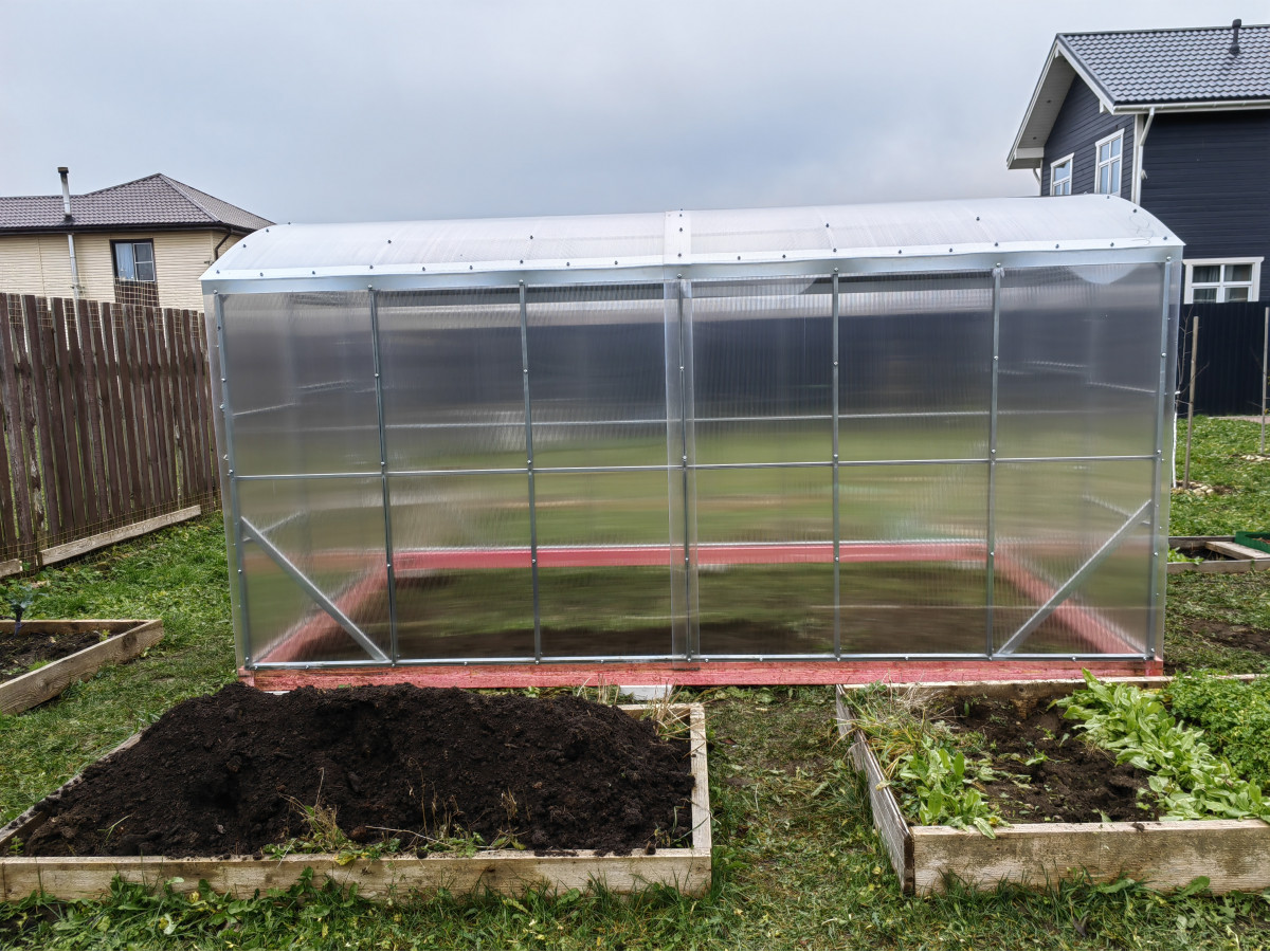 • теплица рекомендована для северных широт с большим количеством осадков, выдерживает порывистые ветра и сильные снегопады, не деформируется под слоем слежавшегося снега толщиной до 90 см;
